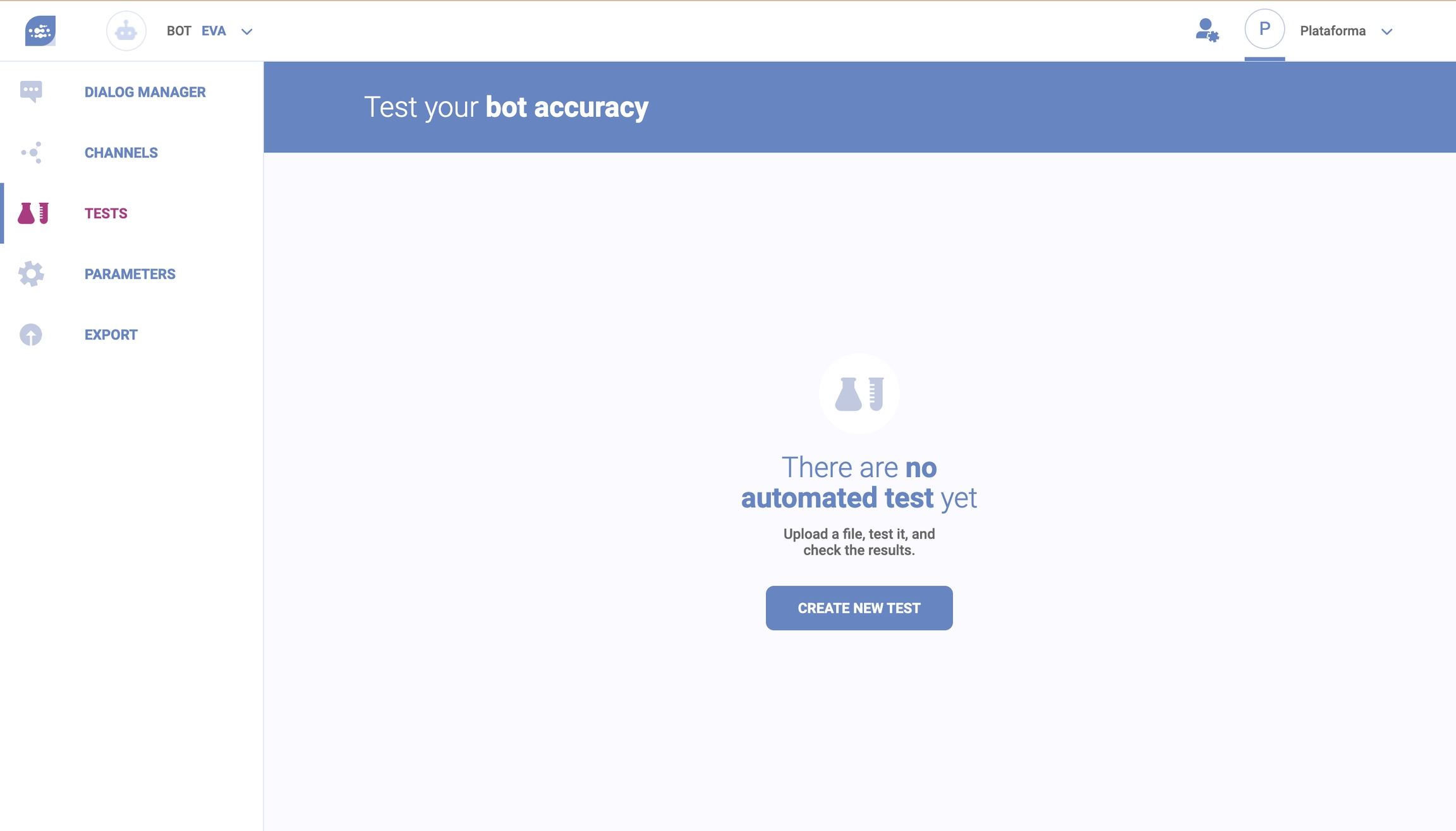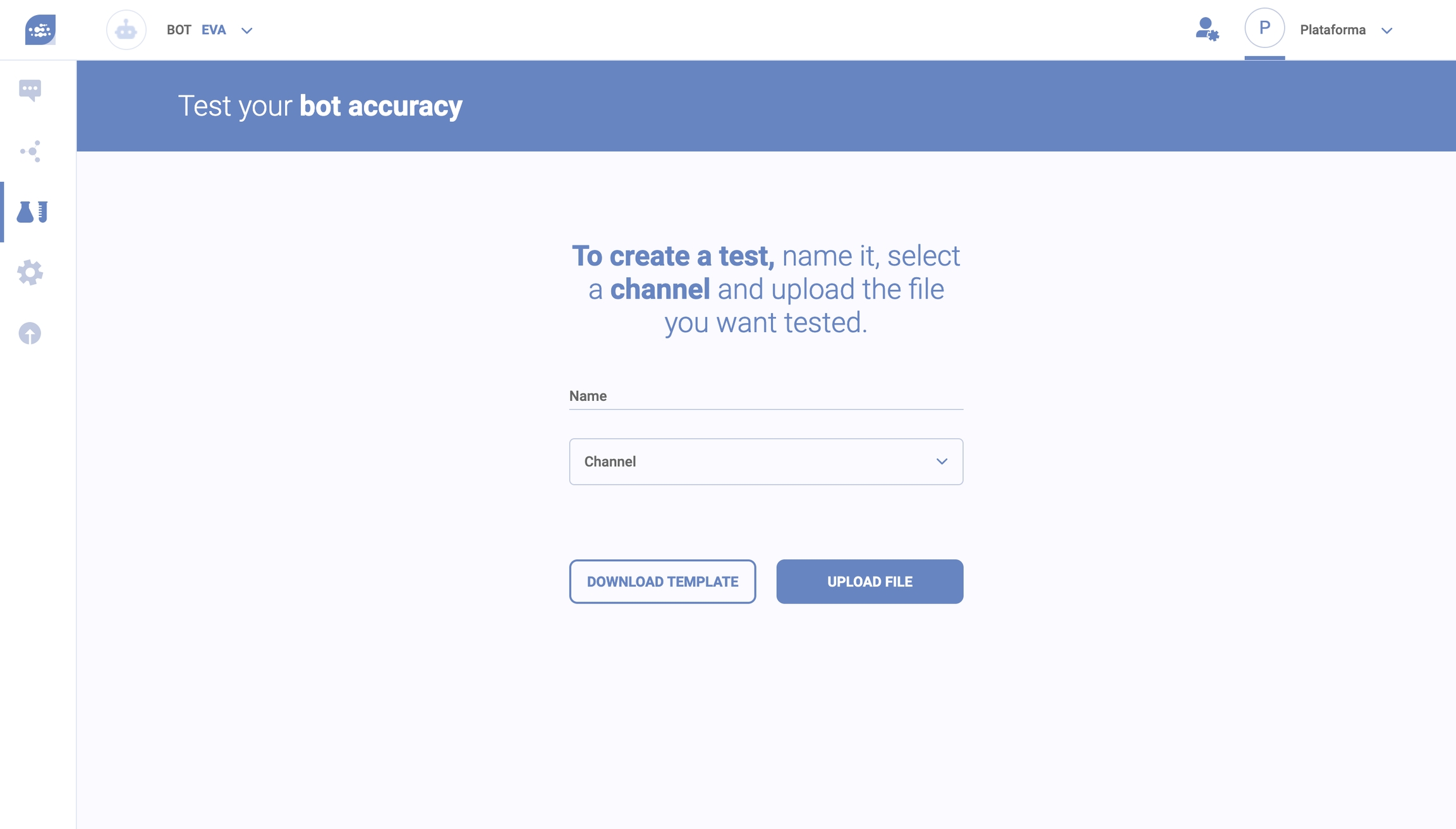 To test your intents, first, download the template to guide you on how you have to format the .xls file that you will upload.