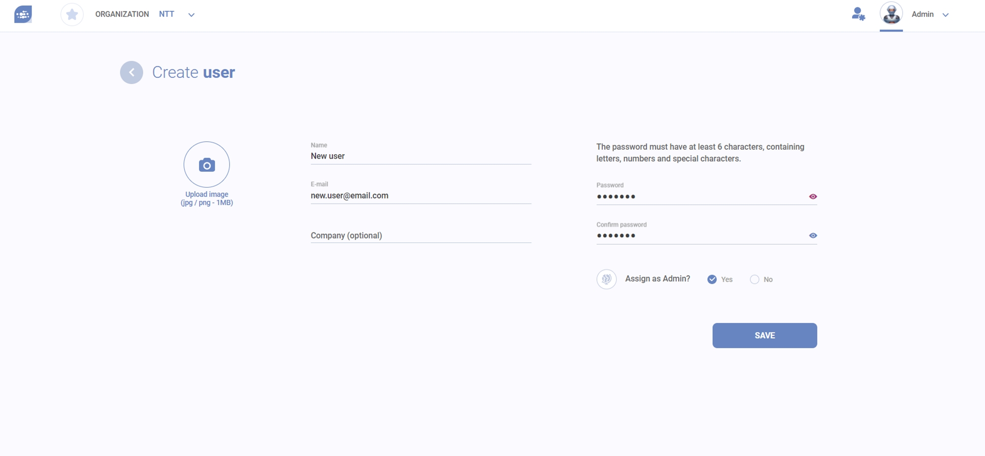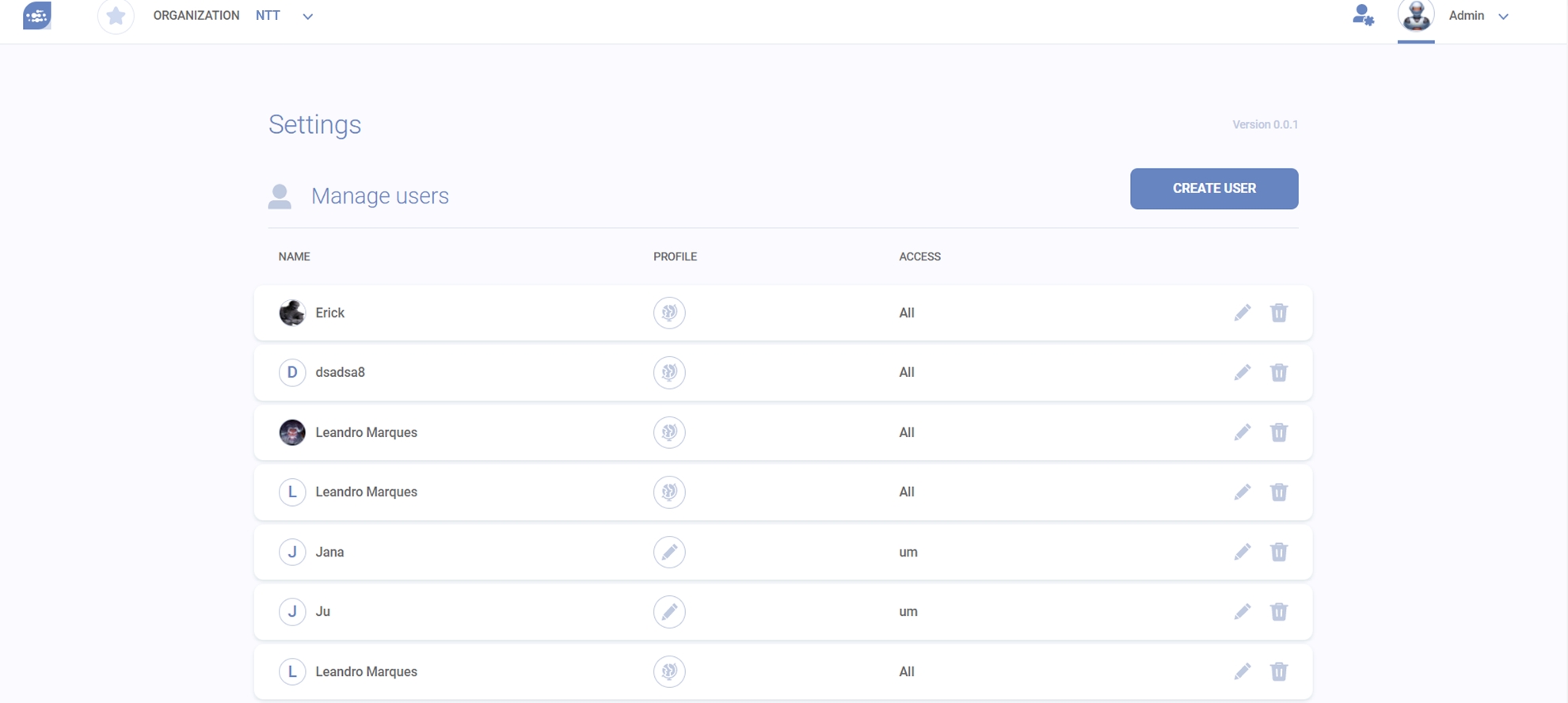 Then, you'll see a list of all users that are part of the Organization. If you still don't have any users or need to create a new one, just click on "Create user".