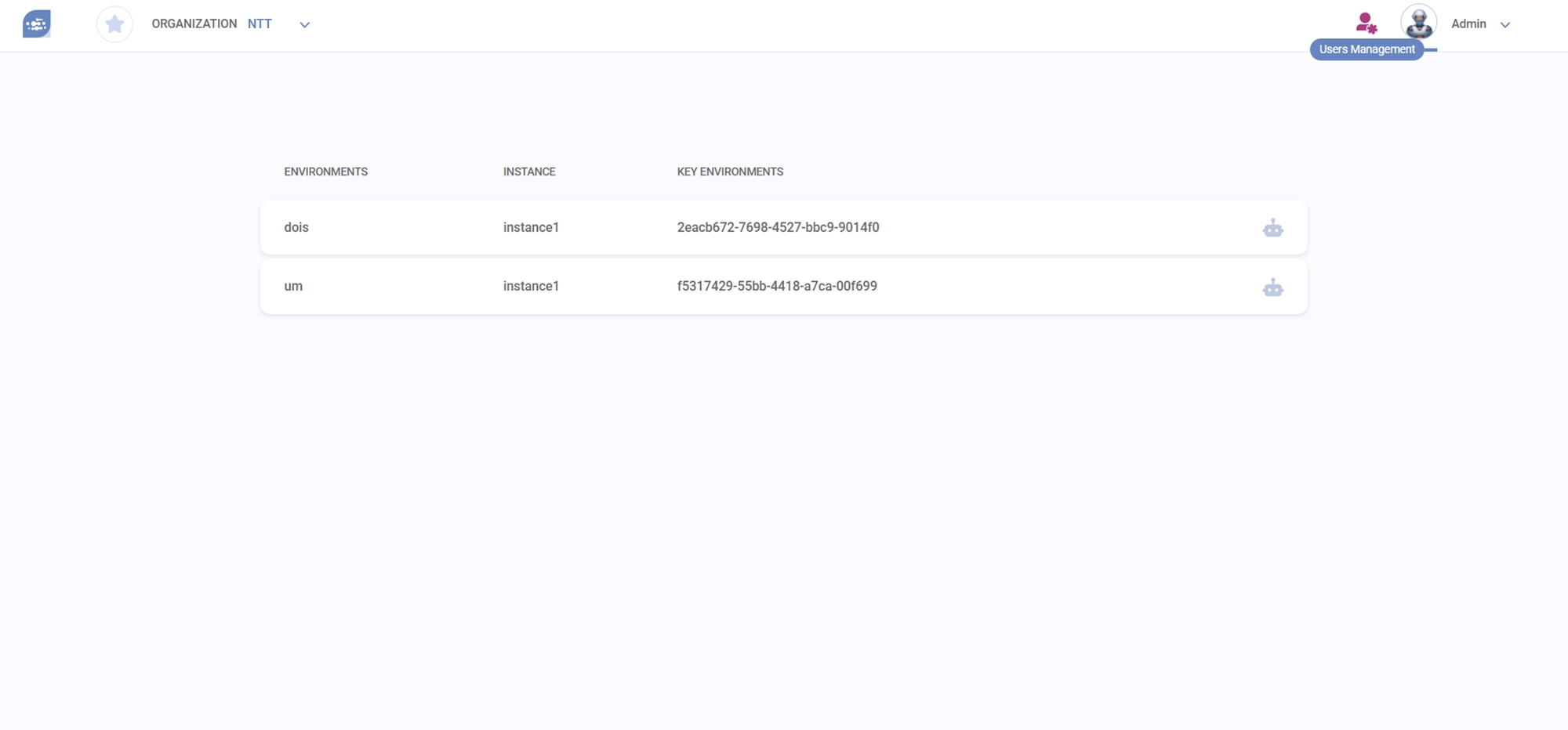 Admins have access to all virtual agents and environments in the organizations they are part of.