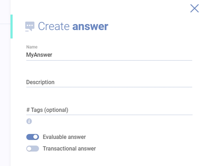 When you register an answer name, it will also be its “code”, eva will deliver that specific answer when faced with that code. If the answer is transactional, the transaction is done before the answer is delivered. If the answer is not found, the “code” content is sent to the NLP so it can be interpreted.