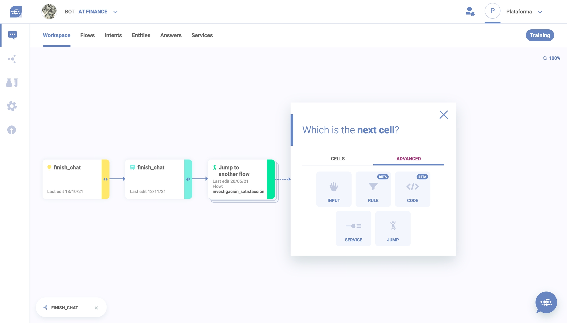 These cells are used to create complex conversational flows, where custom logic and multiple options have to be implemented.
