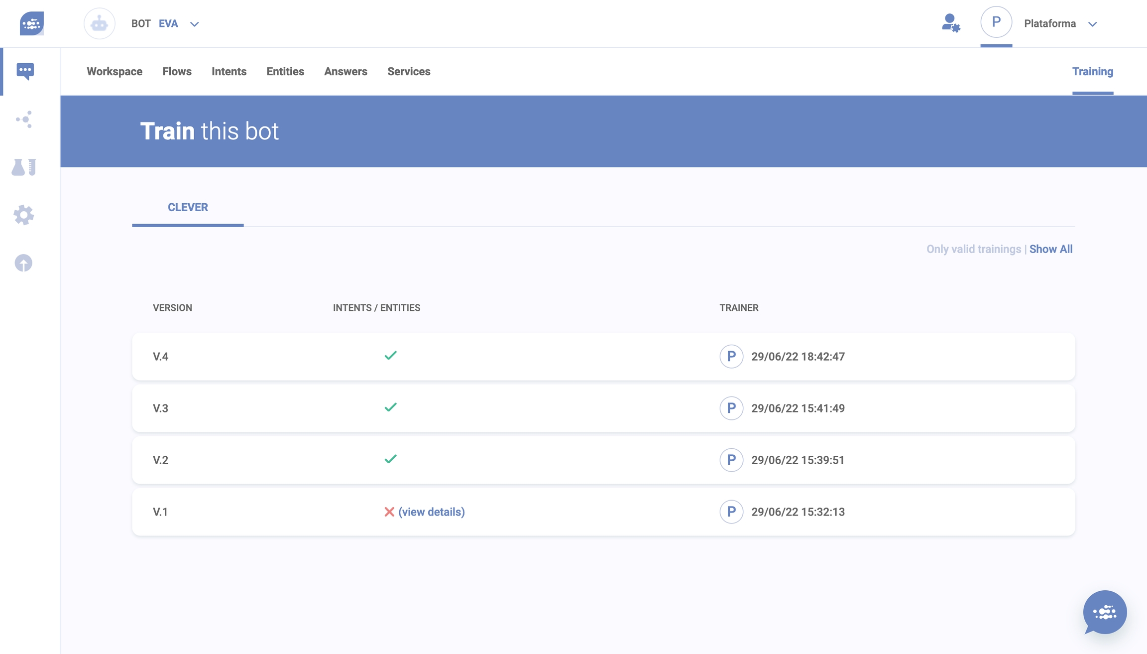 All trained versions (valid and invalid) are kept in the training repository. The latest trained version will be automatically published.