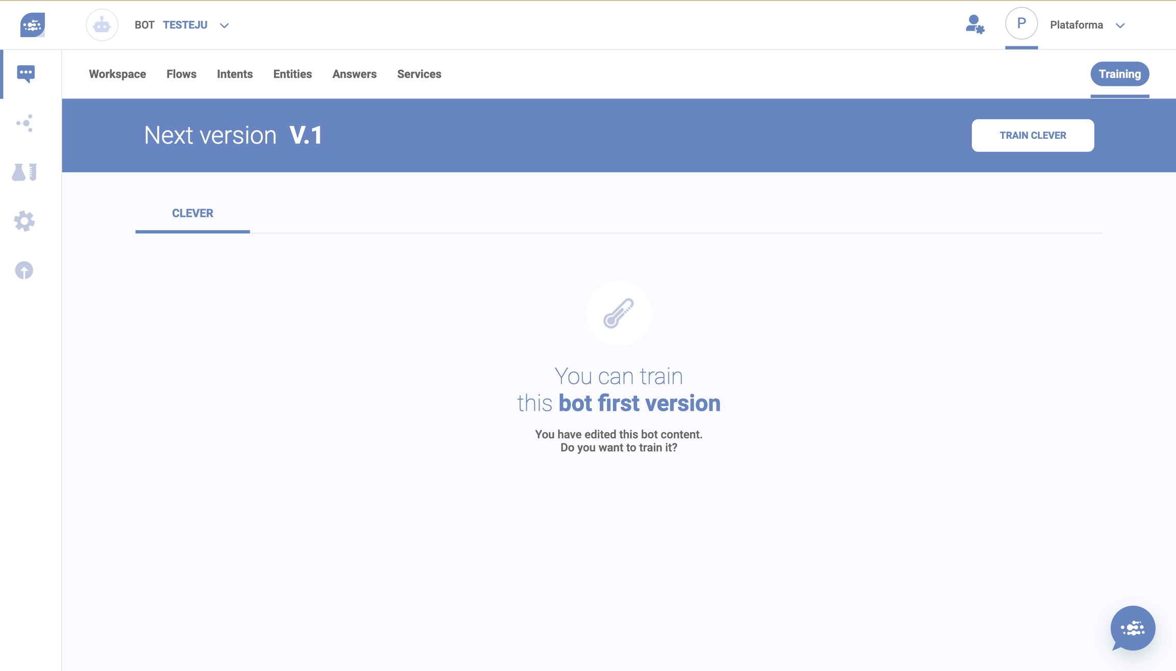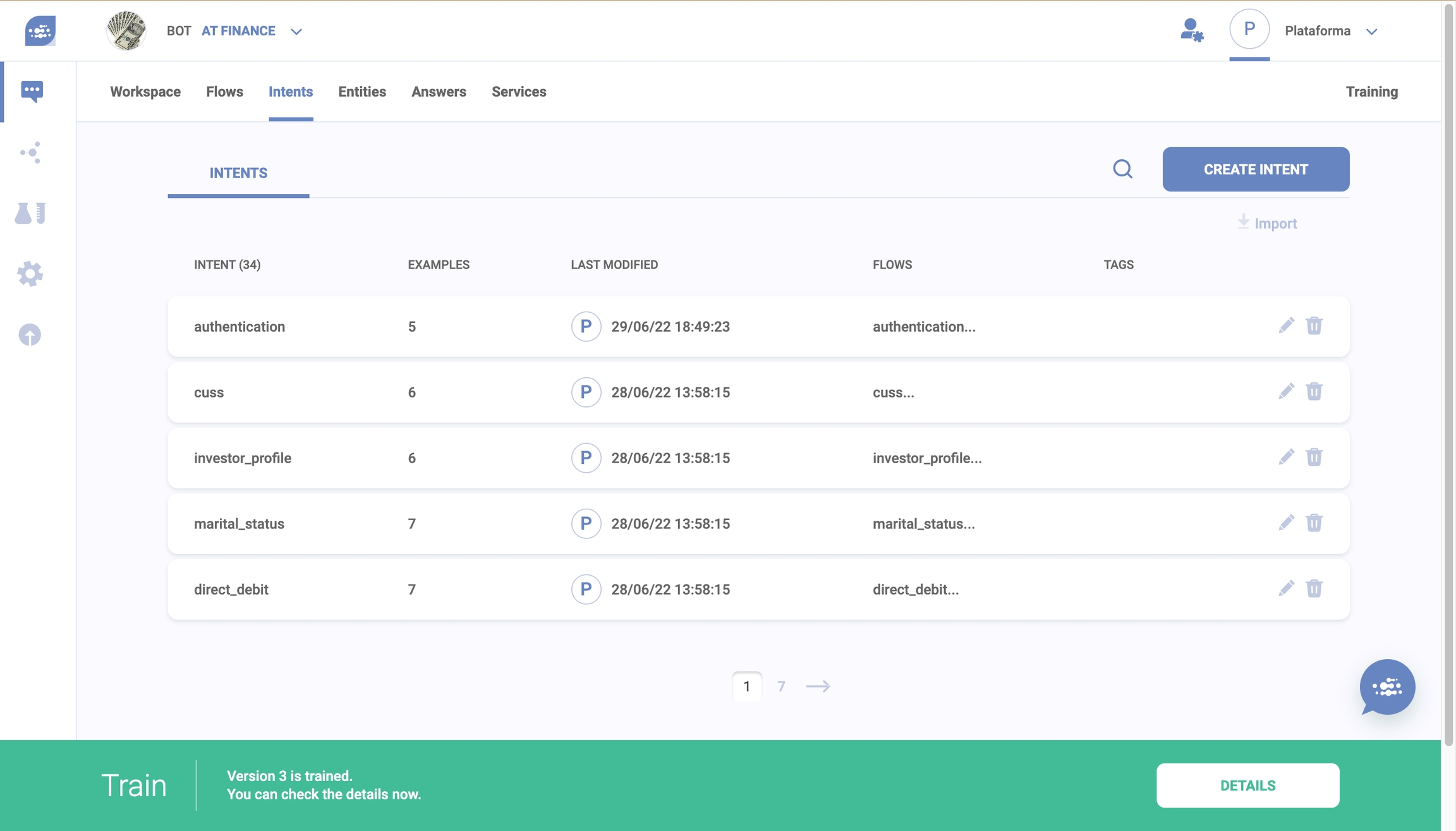 If you are using NTT DATA eva NLP, you will have to train your Intents and Entities using the eva cockpit. Every time an Intent, Entity, document, or question is changed, the button “Train” will appear in the training section. Just click it.